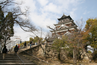 安土桃山時代から江戸時代の日本の城で、国の史跡に指定されています。原子爆弾により破壊されてしまいましたが、復元された5層の天守閣は桃山時代の様子をがうかがえる武家文化を中心に紹介する歴史資料館で、美術工芸品などを常設展示しています。当時の城下町の様子も伺えます。また、日清戦争以降大本営が設営された跡の歴史から軍都が伺えます。