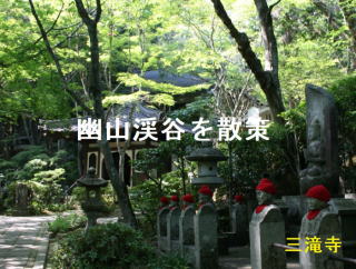 三瀧寺は、山の懐に閉じ込められたような静けさの中を歩くと、水音がいたるところに置かれた石仏の囁きのように思われます。市内とは思えない静寂と穏やかな祈りの寺。何度でも訪れたくなる不思議な安らぎがあり、幽山渓谷を散策です。